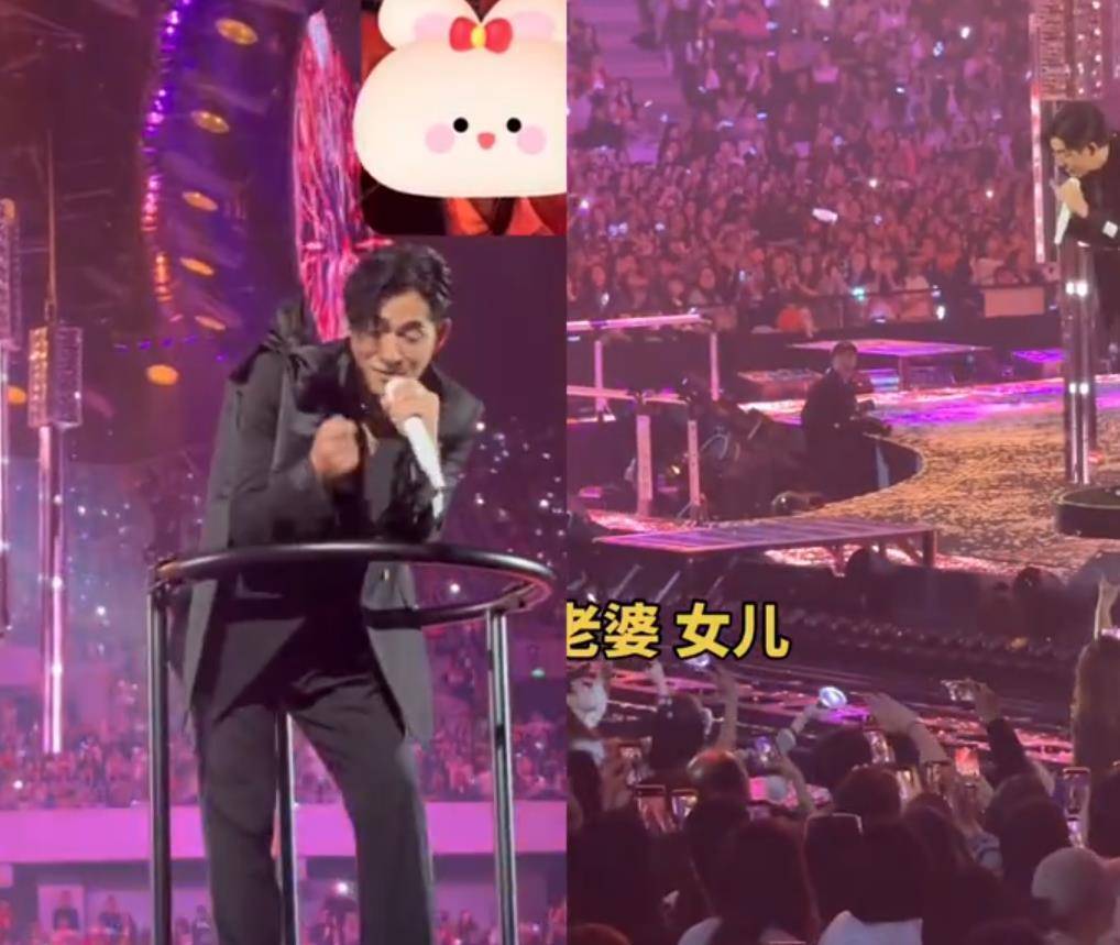 舞台上的周渝民显然早知道妻女来了。唱《第一时间》时,他唱到「累了不要见外,把我挖起来」突然朝观众席某个方向笑出梨涡,导播镜头立刻跟上——喻虹渊正用口型对他说「加油」,女儿则好奇地扒着栏杆看舞台,小脑袋随着音乐轻轻晃动。这个画面被现场粉丝拍下发到社交平台,有人调侃:「原来花泽类的温柔都给了妻女,当年骗我们流的眼泪都要还回来了!」